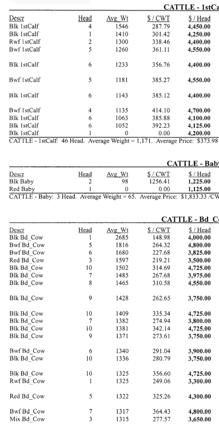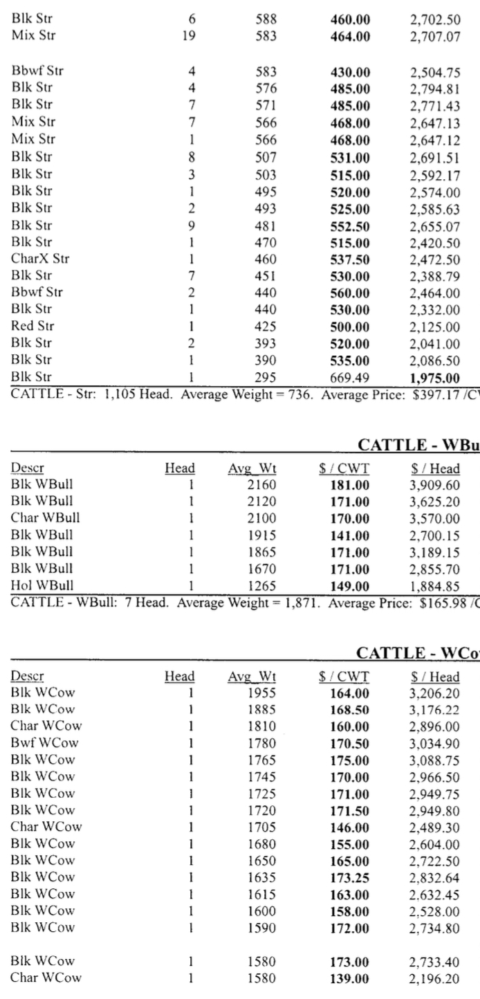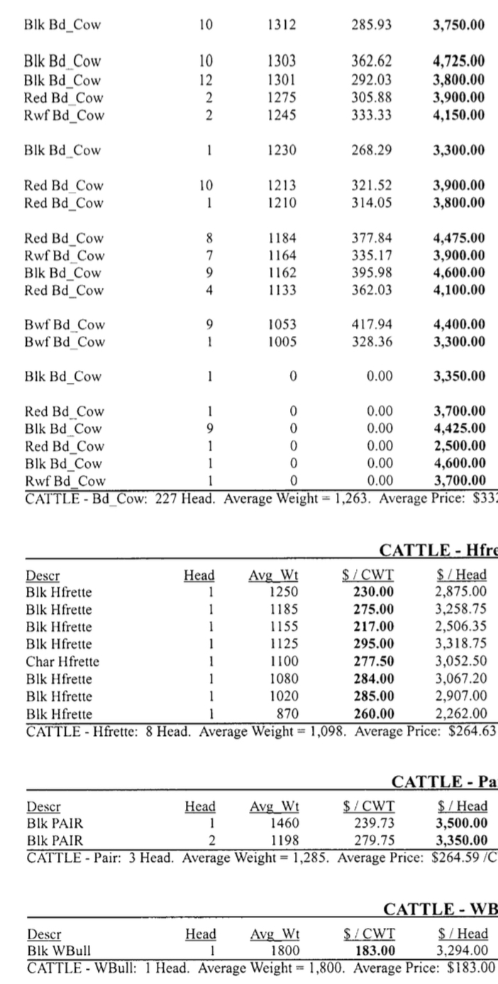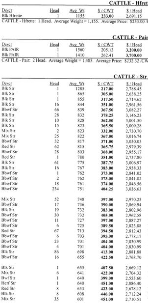 Sale Results